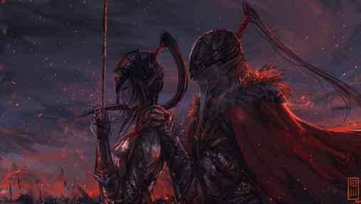 it's from Dark Souls 3...the knight is the Ashen One (the "protagonist") and the lady is the Fire Keeper