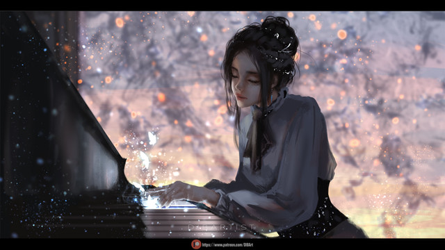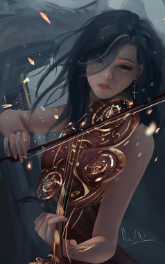 Truly you are amongst the more successful of artist on DA. I love the point of view for this piece, the subtleness of the grip on the stick, the preciseness of fingers on the fingerboard, the stance of the subject and the background for once is dark. there is nothing to distract the focus on the subject.Β