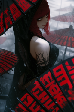 Wonderful work with the angle, the expression and the rain.