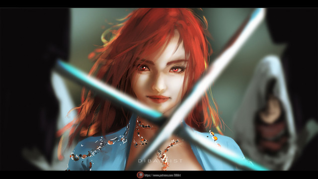 #red #assassin #burning #duke #lenia #redhair #rose #wine #ghostblade #wlop