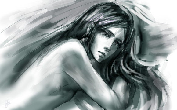 Beautiful. Having her facing away from the viewer leaves me curious as to what expression would be on her face. I enjoy having it left to my own imagination to decide. Lovely work.