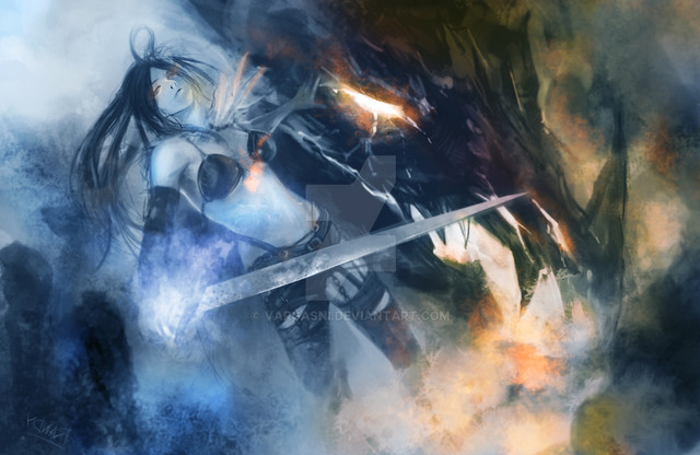 The warrior's road is an uncertain, lonely one. Giving of oneself to fight for others or for what they believe in. In a world of storm and chaos, there is so much sadness in her eyes, so much reluctance to put on the armor. She must be asking, "Will I become part of the storm, or will I truly make a difference for those I hold dear?" Amazing work!