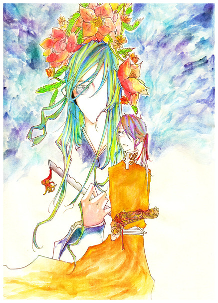 wow this is so beautiful! I am in love with the colours on this! the way you paint the hair and the flowers just amazes me! This is truly wonderful! I am in love with this!