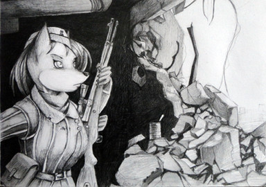 #anthro #digital #fox #foxes #furry #girl #gun #vixen #war #woadedfox #art #sketch