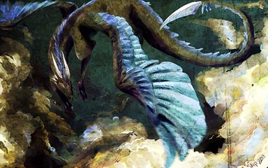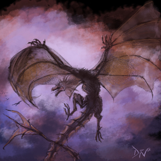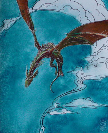 That is great, I love the line work and the atmosphere created through the colors and that "unfriendly" face of Fafnir. These white eyes are quite scary, though.