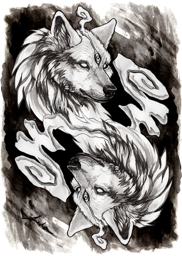 Sköll and Hati from diploma work.Norse mythology.