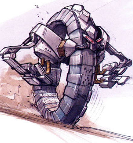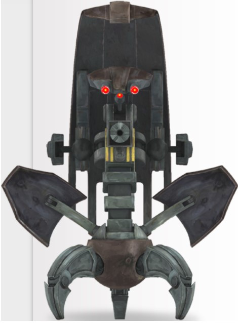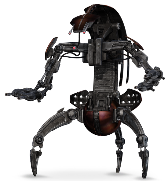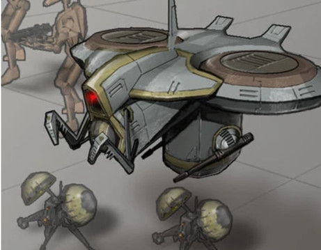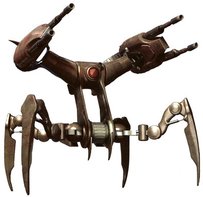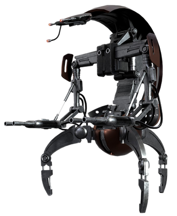 Droidekas, also known as Destroyer Droids, are one of the well-known droids created by the Colicoids, a ravenous species of insectoids who demanded a barge-load of exotic flesh in exchange for their creation. They were armed with twin repeating blasters, and also had a built-in shield generator to protect them from blasters. They could also change their bodies into a wheel-like configuration to travel quickly.