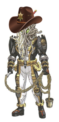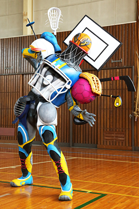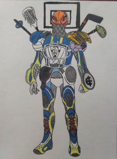 A gift for JCFanfics and TUFFAgentShepherd .Gameface is one of Sledge's outlaws. He is an expert at any sport, but often changes the rules on a whim. He fights enemies by shooting Three-point Shots, and can also transform himself into a bunch of sports equipment to batter enemies. His Japanese name is Debo Supokon.