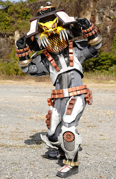 A gift for JCFanfics and TUFFAgentShepherd .Hunter is one of Sledge's outlaws. He wields a machete and a bowgun as weapons, and he also drives a motorcycle to hunt down his prey. His Japanese name is Debo Karyudosu.