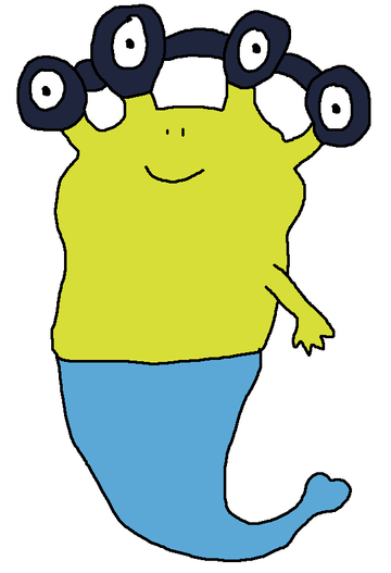 A gift for Eli-J-Brony , JCFanfics , and TUFFAgentShepherd , as well as Griffguy26 .This monster is based on Jikitori, an ethereal hunger spirit which possesses people, but can be repelled if one eats a single bunch of rice. He not only traps enemies inside of rice rolls, but he can also possess a single host and make them eat food and grow rapidly.