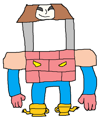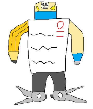 A gift for JCFanfics and TUFFAgentShepherd .Razorblade is one of Sledge's outlaws. He sprays shaving cream on people's hair, and then uses his safety razor arm to shave off people's hair. In battle, he shoots shaving cream bullets and uses his safety razor arm as a melee weapon. His Japanese name is Debo Higesora.