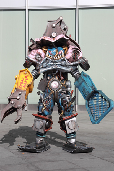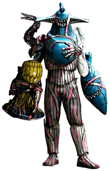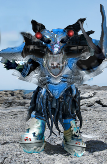 A gift for JCFanfics and TUFFAgentShepherd .Scrapper is one of Sledge's outlaws. With the special destructive energy from his Wreckage Rays, he can create a giant energy flyswatter which demolishes any building in an instant. His Japanese name is Debo Peshango.