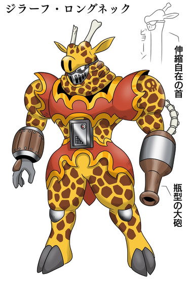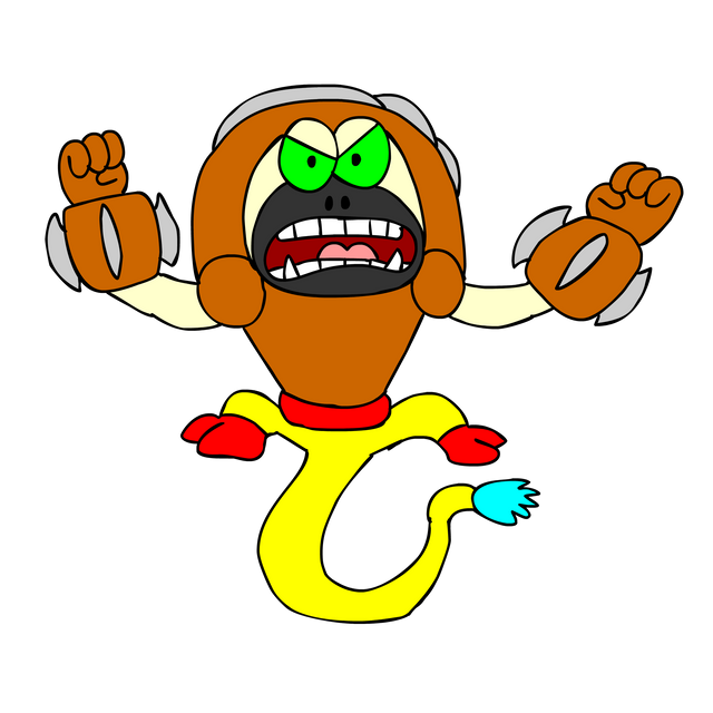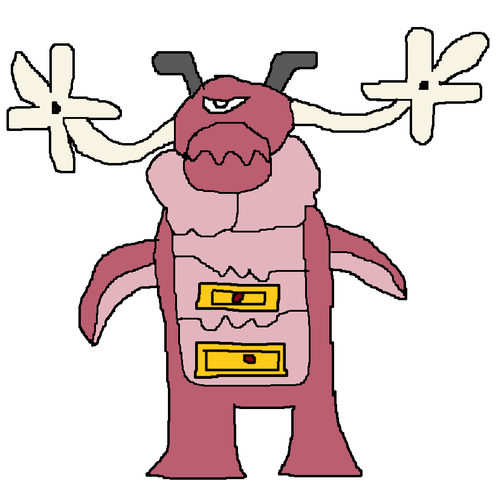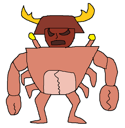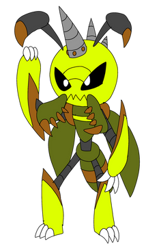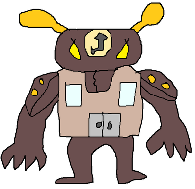 A gift for JCFanfics , BenTheFox1996 , and TUFFAgentShepherd .A Trinoid created from a trumpet (Rappa), an antlion (Arijigoku) and chestnuts (Kuri). He is able to emit loud trumpeting noises from the trumpet-like projections on his shoulders which can cause buildings to fall down. He also shoots chestnut bombs from his trumpet-ilke arms.