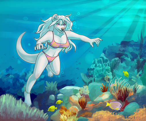 #anthro #bathing #lady #piercings #bathingsuit #bikini #bright #dragon #fish #fun #ocean #pretty #rasta #sea #shark #stripes #suit #tiger #water #woman