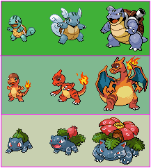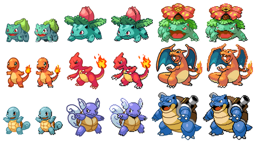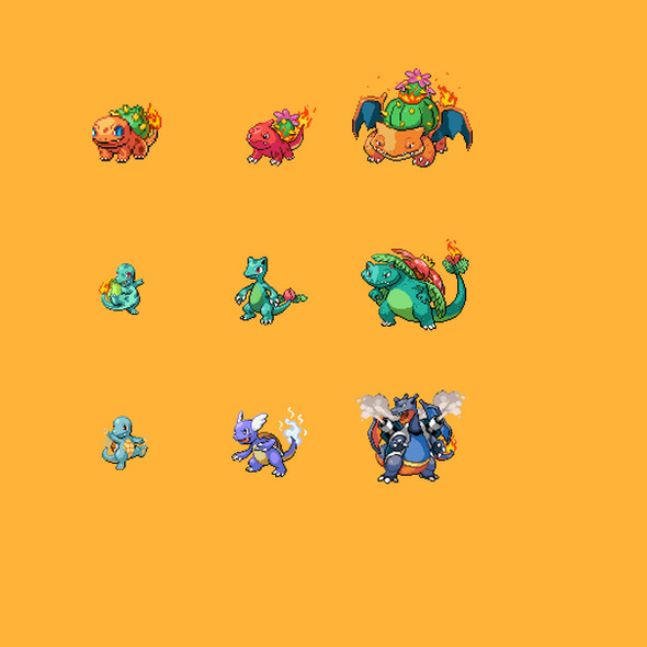#typeswap #blastoise #bulbasaur #charizard #charmander #charmeleon #evolutions #fakemon #ivysaur #pokemon #squirtle #starterpokemon #starters #venasaur #wartortle #pokemonsprites #fakemonsprites #fakemonstarters #gen1pokemon #typepokemon