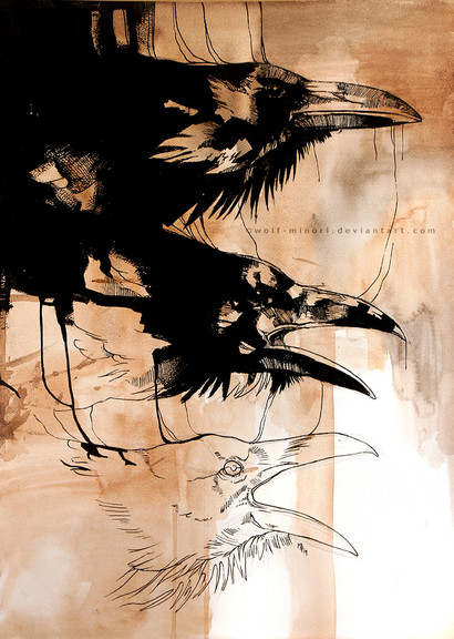 #animal #animals #birds #birs #black #crow #crows #dark #dead #diploma #drawing #ink #paiting #raven #ravens #skull #watercolors #watercolours