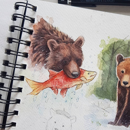 I didn't have any idea at first and was afraid I'm not going to make it. But then I thought of a bear hunting fish and looked for some reference icture on the internet and founf this one: pl.pinterest.com/pin/387661480…