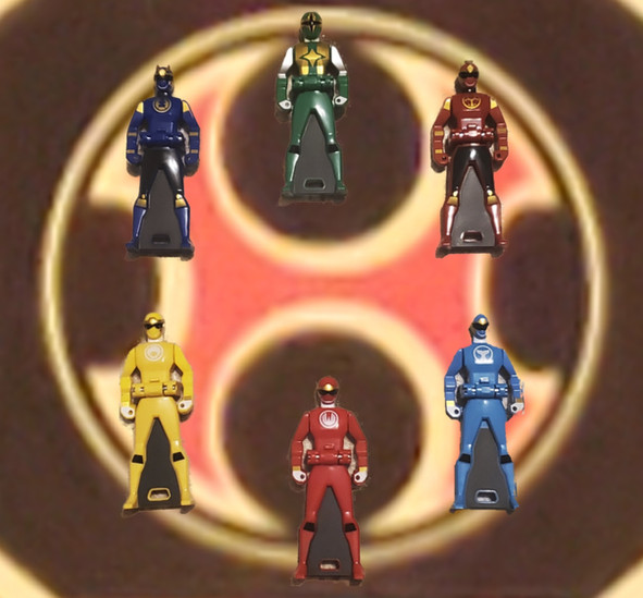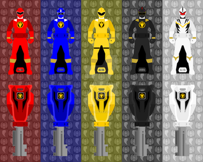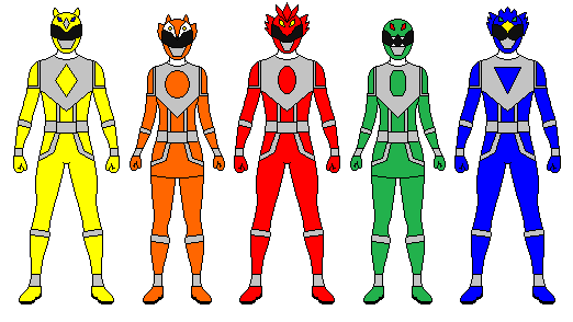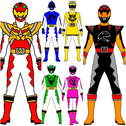 "Red Fighting Spirit! Shishi Leo!" (Red Lion Ranger)"Blue Growling! Toraiger!" (Blue Tiger Ranger)