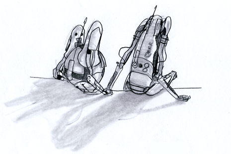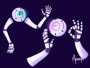 "Of all the robots I could float around in an infinite space with, I'm glad I'm floating with you..." That's what it looks like their eyes are saying. Hehe...