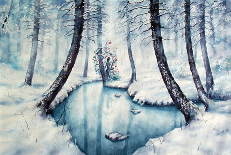 Everything was done wet on wet, so the colors just blended themselves. Except for the light in the treetops, that was lifted with a tissue while the paint was drying.
