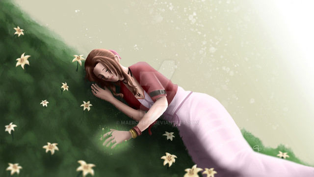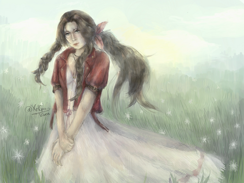 A fanart of Aerith and first of my new Final Fantasy 7 Remake series.The artwork was very much inspired by Aerith's light and graceful personalities. I really enjoyed drawing and painting her as the process was a continuous experiment to see how I can best express Aerith's nature as well as her aura of being a Cetra. She is my favourite female character in the Final Fantasy 7 Remake!