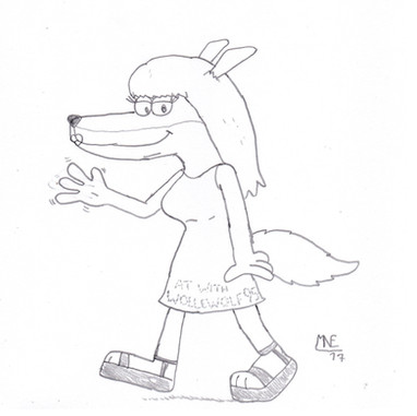 A gift picture for www.deviantart.com/kbafourthti… . This is a sequel to the embarrassment picture I made for him that involves some unseen furries are talking about Katie’s legs but Katie told them that she has a boyfriend. In this picture the unseen furries are talking About her legs again and they thought she’s a fox. That once again embarrass Katie. Katie once again tells them that she’s a wolf, not a fox and still has a boyfriend. Then she speaks in thought that this was the straw and no more skirts and decides to wear pants from now on.