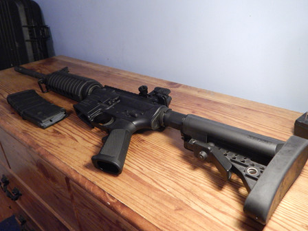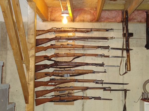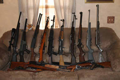 Minus my Glock 19, these are all the firearms I own currently, from right to left, 1891 Argentine Mauser, Mosin Nagant M1930, CZ Upland Ultralight (bought today), Franchi SPAS-12, Maverick 88 Security, an AR-15 built on an Anderson Mfg. lower, and a Smith and Wesson M&P15-22.Related content