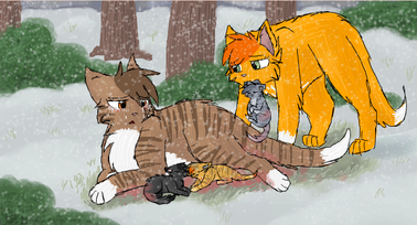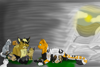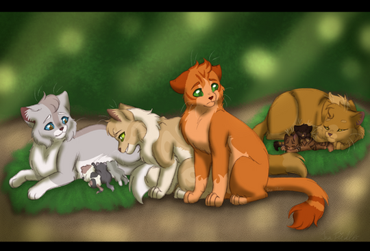 Characters: Brokenflight, Roseheart, Foxkit, Tigerkit, Grasskit, and Lilykit.