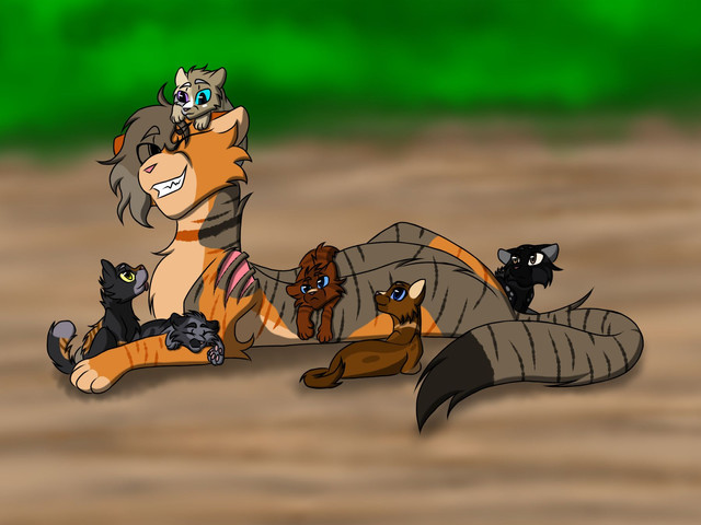 All kits name's have a meaning. Foxkit got her name because Tora saved Rose from a fox, Tigerkit gets his name because one of the UaT cats tells her Tora means Tiger, Grasskit is named after Grassfang, an elder that had big part in Rose's life, and Lilykit got her name from Brokenfligh, her favorite plant being a lily.
