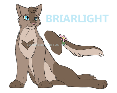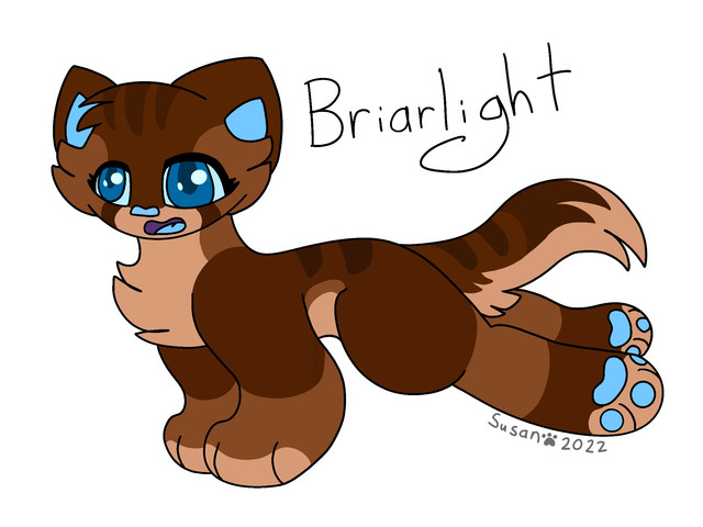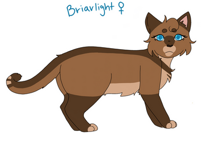 Briarbright is a fluffy brown and white tabby she-cat with yellow eyes