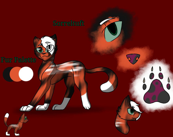 Mother: Acorntail(tan and white tabby she-cat with green eyes/deceased)