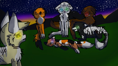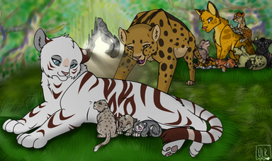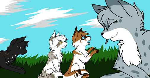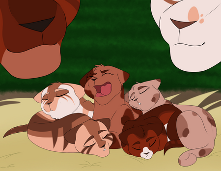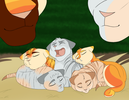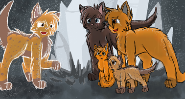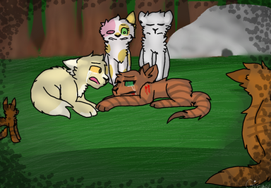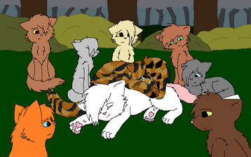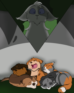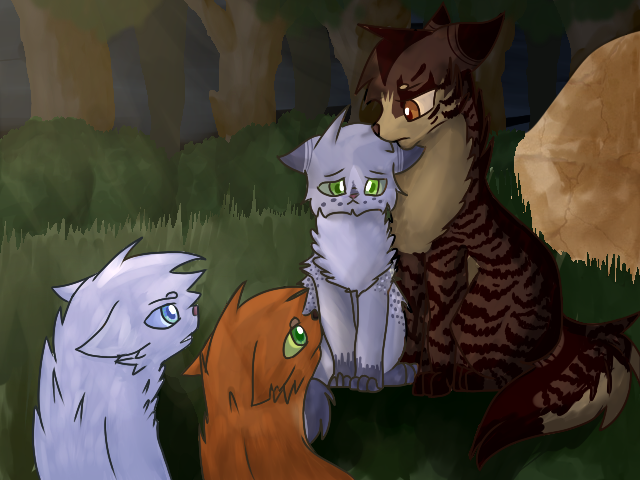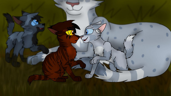 Frosttooth watching his nieces and nephews from afar.Characters: Tigerkit/face, Foxkit/tail, Lilykit/snow, Grasskit/heart and Frosttooth.