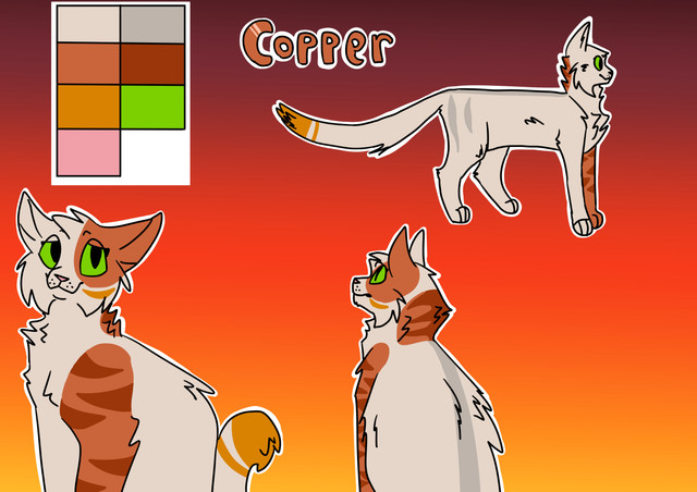 Father: Redfeather(ginger and white tom with green eyes/deceased)