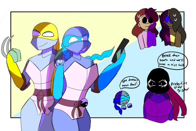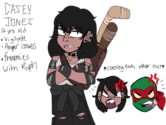 Leo cried for two hoursLisa's outfit was inspired by an April fanart I found on Google with changes made on my end. I also made Casey's weapon more tame because 1. Haaarrrd pass on that headache and 2. It blends in more in a non-apocalyptic world. Lisa gets a katana cause Leo
