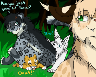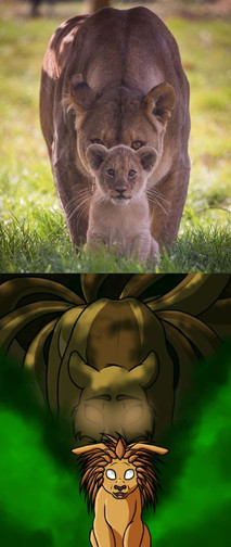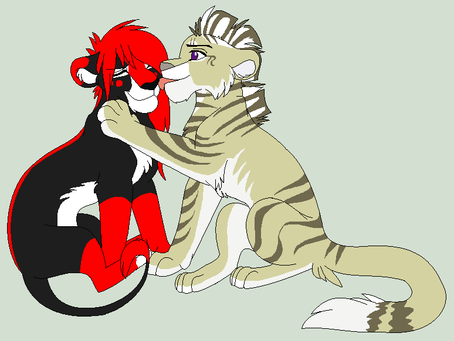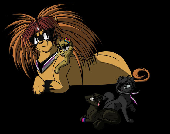 Characters from left to right:Tora(large orange tom), Mayuko(dark sandy colored she-cat), Ushio(black collared tom), and Asako(black tabby she-cat)