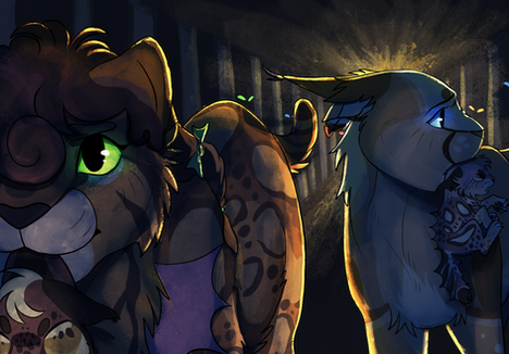 Another Sky scenario where she and Raph run off to protect their little ones, both embracing their savage and feral sides.I enjoyed working on this one, let me know if you guys would like me to upload a SpeedPaint of this one.