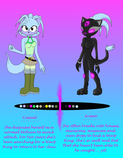 Same thing as the last one. Redesign and a more or less new character from a different universe.I was actually doing the line work for these two at the same time, so they actually look relatively similar. Thank God. Mobius Delulah might still look a little big -3-