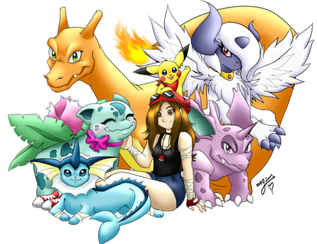 This took about two or three days work because I had to keep putting it down so I wouldn't burn myself out. That damn Scyther and Flareon are what tested me the most for some reason. I've drawn Flareon at least three or four times now, you'd think I'd get the hang of it by now.