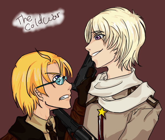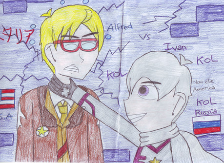I love Rusame, but I always think of this when I hear my U.S. History teacher say Cold war. So I drew it.Russia and America belong to Hetalia.