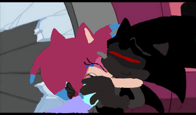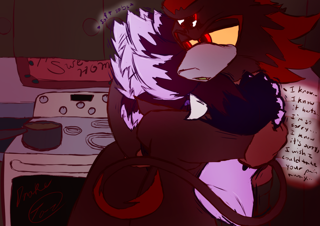 Crys was captured by Shadow, and held for 6 months. The moment depicted was 1 month in. 1 month later, she was expecting for the second and last time. She managed to reach Shadow, the real Shadow, and convince him to come back home with her. Tails was able to cure him, the cure based off others who were infected. Shadow went back to his normal self and Crys told him the news.