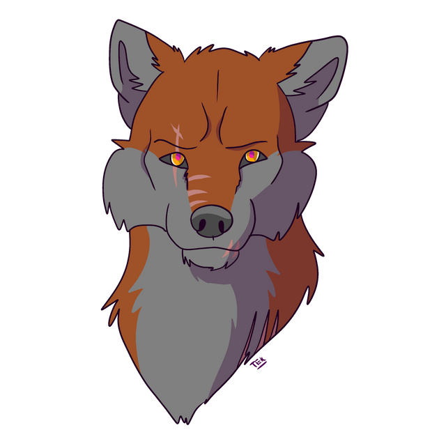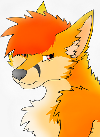 Working on a kitsune sona. Here's a headshot.He needs a name, as that's one of the things I'm working on. The triangles with whisker marks indicate how many tails he has (3).