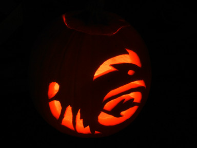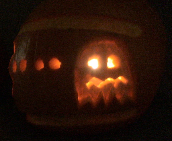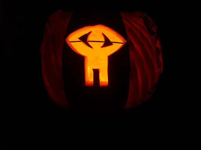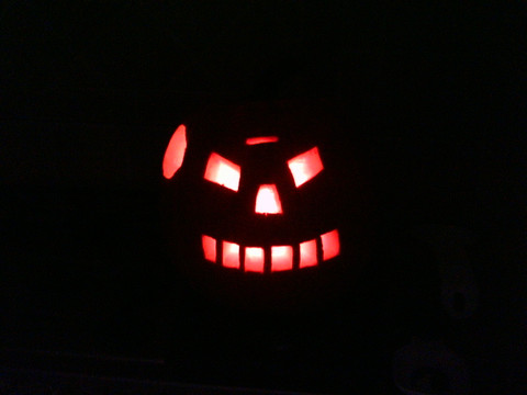 All I did was just cut the sides out of the pumpkin, and move them inwards and fixing them in place with tooth picks. Gah that was not fun trying to tooth pick them in place. But I did. For science.