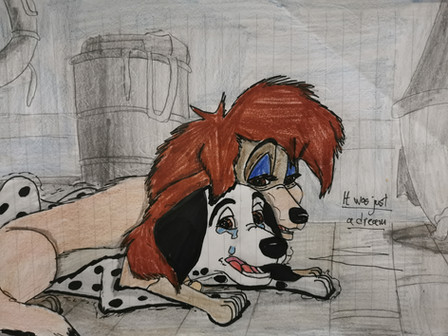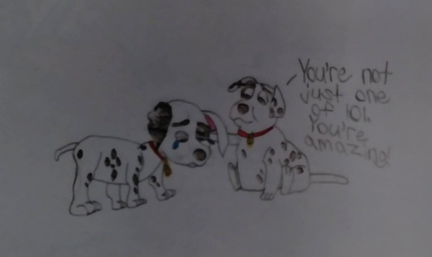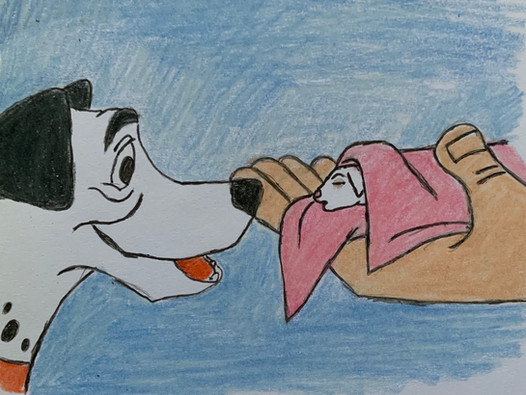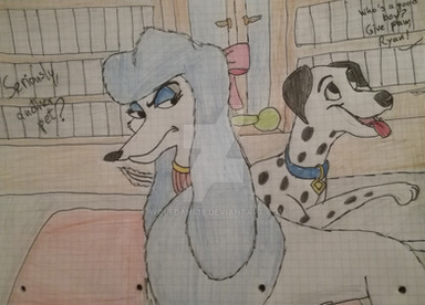 Also, notice someone else? That's right, Marlene is above them! Aside from being dead, she must be proud at Georgette for making a right decision to look after the autistic Dalmatian.
