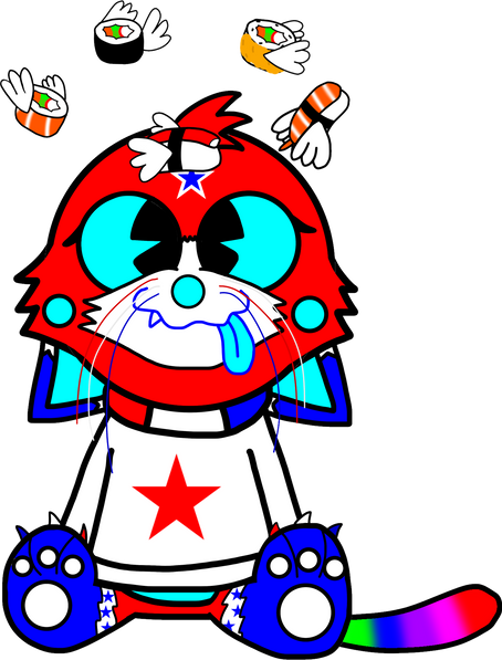 Here is Star seeing her favorite food sushi with wings circling around her head after falling down and knock her head! And oh yeah, S is copying her facial expression too.Star (C) Linag2005