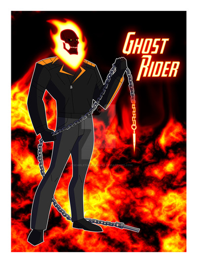 Anyway, the origins are crazy complex, but simply put: someone gets the curse and they turn into Ghost Rider, a fiery-skulled demonic entity who counterintuitively is compelled to seek justice for those killed or harmed by evil doing, and usually does so clad in leather and riding something badass like a motorcycle, which is also on fire.