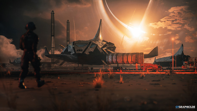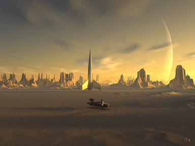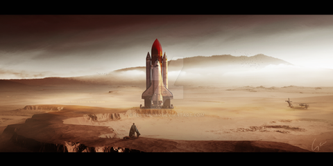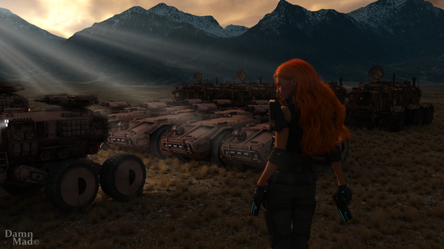 #daz #vue #desert #digital #digitalart #female #girl #landscape #redhair #rocket #sciencefiction #scifi #spaceship #woman