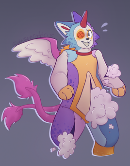 The person who's getting this requested an anthro puffer fish based on a kiwano fruit. It was certainly one of the more interesting characters to make, but I really had a lot of fun!Do not use the art or character without permission. Thanks.