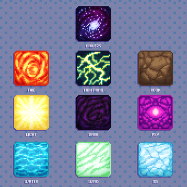 #effects #magic #rock #water #fire #earth #elementalist #lightning #pixelart