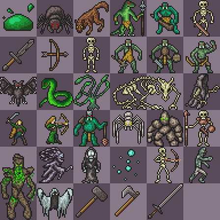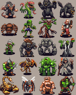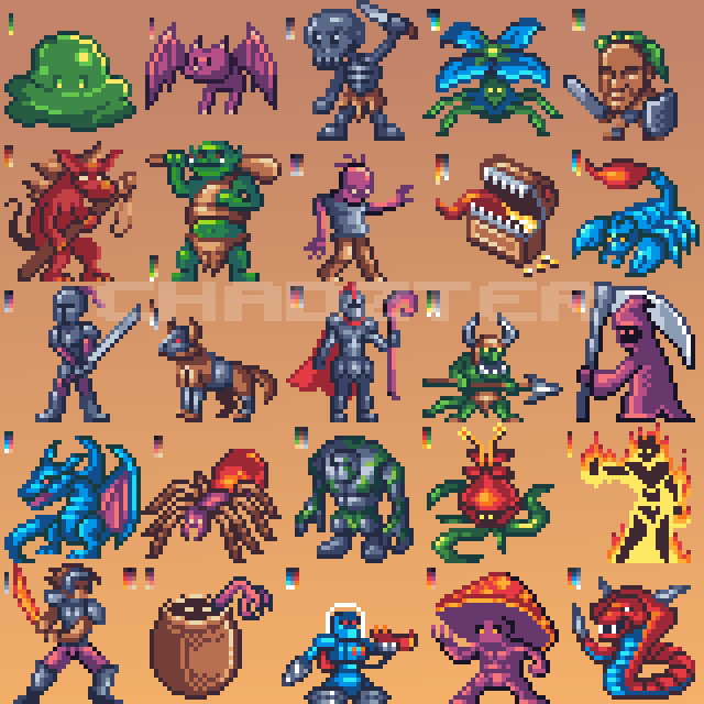 #alien #barbarian #beholder #darkelf #dungeonsanddragons #genie #knight #mindflayer #pixelart #skeleton #slime #werewolf #witch