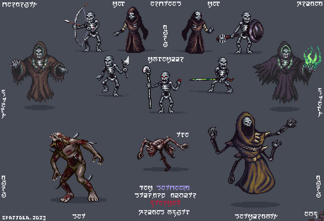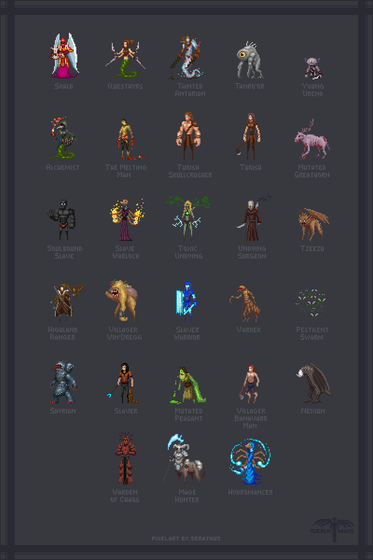 #angel #cthulhu #druid #dryad #ghostgirl #greenskin #knight #lizardman #necromancer #pixelart #skeleton #vampiregirl #werewolf